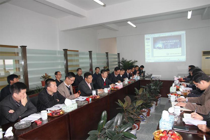 股份公司總經理、閏土生態工業園管委會主任徐萬福及園區各子公司主要負責人參加了本次調研。圖為徐萬福總經理向調研組領導匯報工作。
